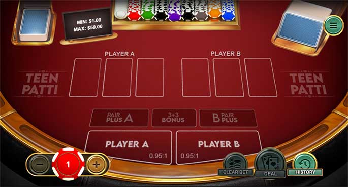Teen Patti quá phổ biến trong giới game bài, được tùy biến với nhiều phiên bản khác nhau và có một chút giống với Poker. Mỗi người chơi được chia 03 lá và sau đó sẽ so sánh giá trị bài với Nhà cái, xác định ai là người chiến thắng