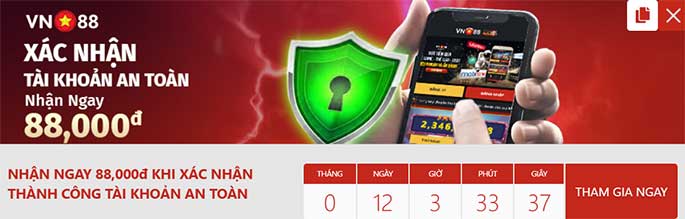 Và nếu thành viên nào thực hiện xác minh ngay khi đăng ký tài khoản, đúng quy trình nhận ngay 88.000đ. Cùng Vaobong88.com theo dõi quy định ngay bên dưới!